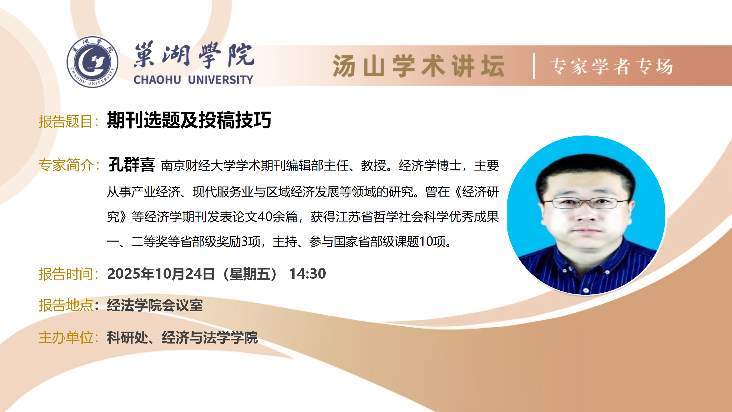 • 10月24日:南京財經(jīng)大學(xué)學(xué)術(shù)期刊編輯部主任孔群喜教授講座